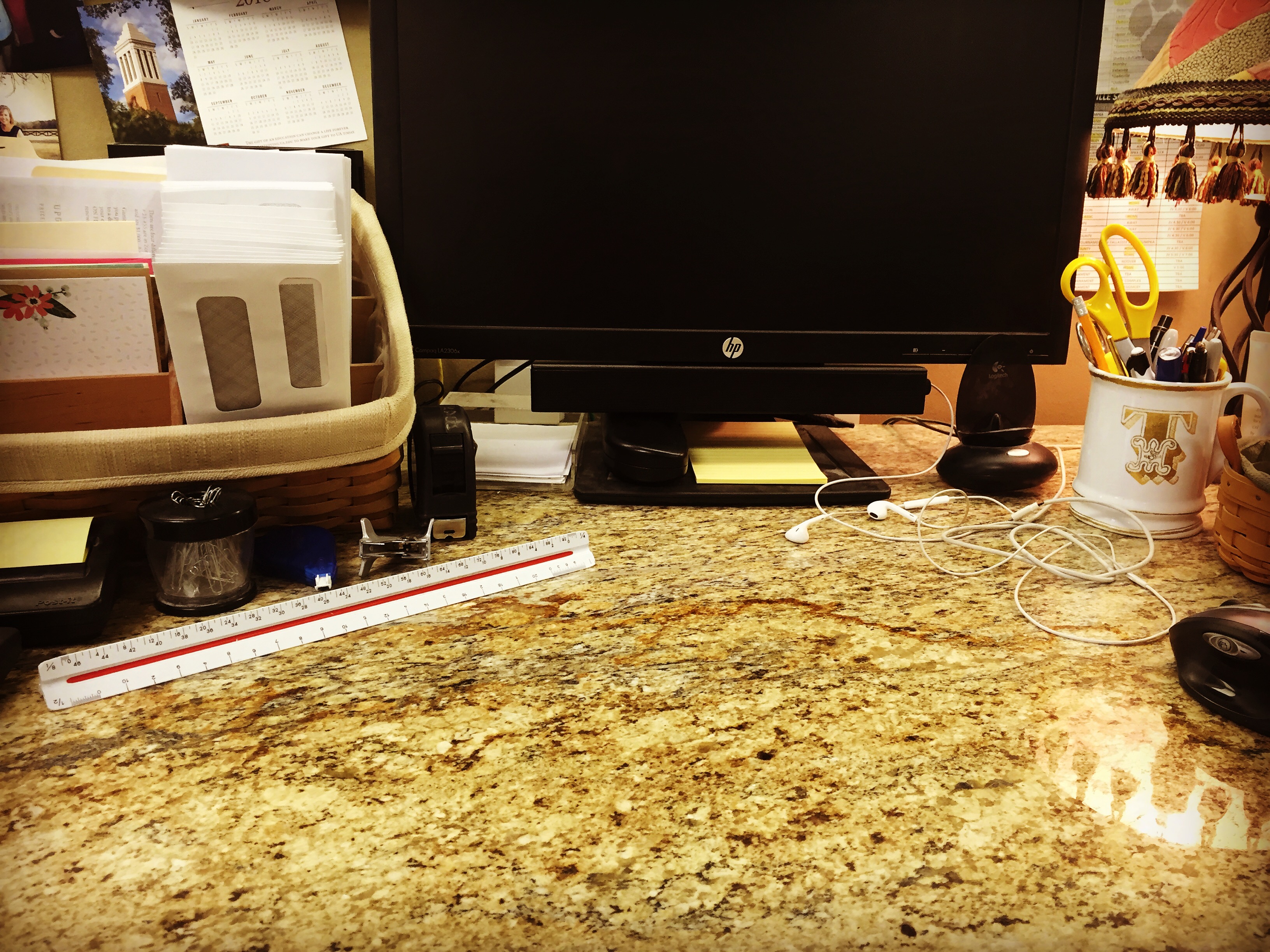 Yellow River exotic granite on desktop